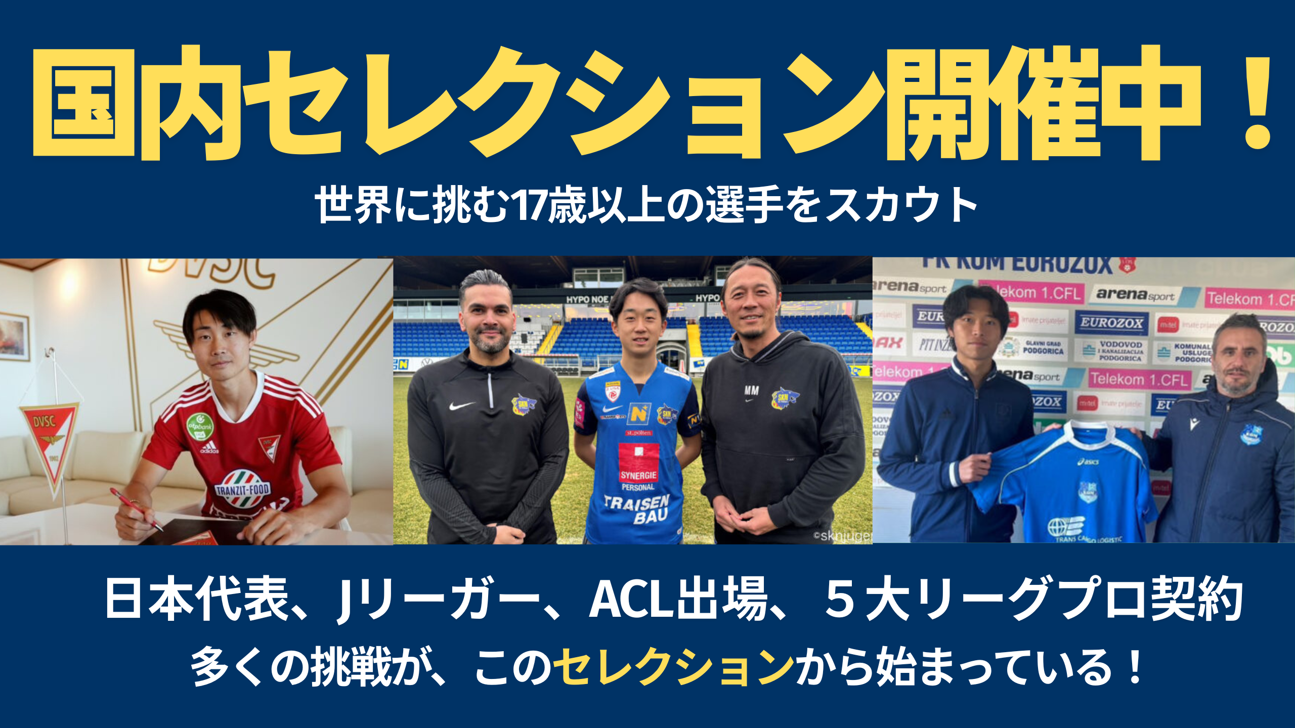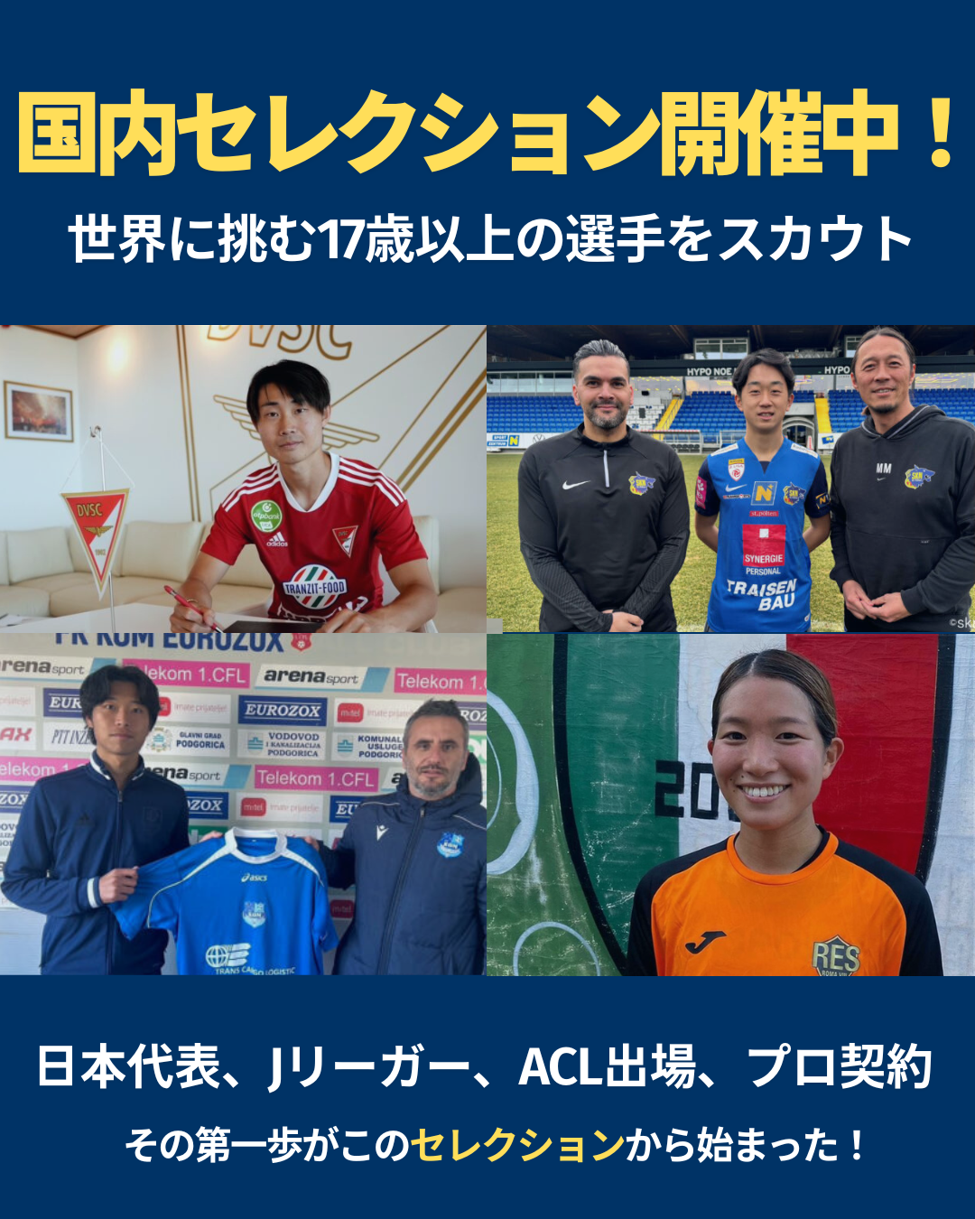 男子サッカーセレクション ②11月30日@(福岡県)THE FOOT UMI 19:00-20:30 ③12月21日@(大阪府)J-green堺 19:30-21:00 女子サッカーセレクション ①11月9日@ZOZOPARK HONDA FOOTBALL AREA 19:00-21:00 フットサルセレクション 次回、調整中 |